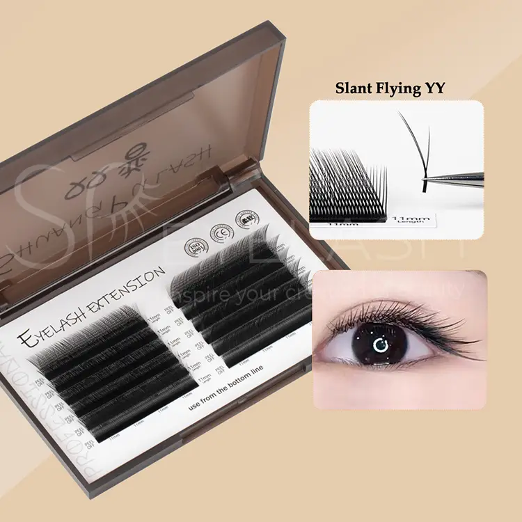 SP Eyelash Slant Fly YY Lashes مصنوعة من مواد ألياف PBT الكورية وتحقق 4-6 أسابيع من الشباك طويلة الأمد من خلال تقنية تشكيل درجات الحرارة العالية. يتم نسج كل رمش يدويًا ، مع قاعدة خالية من الملصقات واللصق ، وهيكل ثلاثي الأبعاد لضمان سمك وعدم الالتصاق. معتمد من قبل SGS و CE و Vegan ، فإنه لا يحتوي على مكونات مزعجة مثل الفورمالديهايد وهي مناسبة لجلد العين الحساسة.
