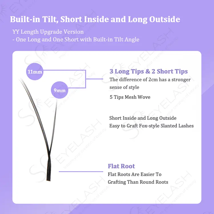 يستخدم SP Eyelash Slant Flying Yy Yy Eyelash's Fox Eye Design تقنية نسج الشبكات المكونة من 5 نقاط ، مما يجعل ذيل العين بشكل طبيعي من خلال توزيع 3 رموش قصيرة و 2 قصيرة. تضمن قاعدة الألياف الفائقة الدقيقة التي تبلغ قيمتها 0.07 ملم الذروة دون أن تظهر ثقيلة ، مما يوفر خيارات بطول 8-15 ملم ، مقترنة بحليقة C/D/M/L لتلبية الاحتياجات المختلفة من المكياج العاري إلى الثقيل. يجعل تصميم قاعدة رقائق Silver Foil الفريدة إزالة الشعر أكثر ملاءمة ، وتشير بطاقة المطابقة بوضوح إلى المعلمات ، مما يؤدي إلى تحسين كفاءة عمليات فنيي الرموش.