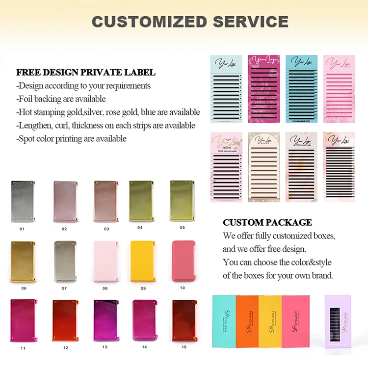 يوفر SP Eyelash مجموعة واسعة من خيارات التخصيص لمصدري الرموش على شكل حرف V ، بما في ذلك العلامات التجارية والتعبئة والتعبئة ، وكمية الحد الأدنى للطلب ، ودعم التصميم المجاني. قبل تقديم طلب كبير ، يرجى اختبار الجودة بثقة باستخدام العينات المجانية المتاحة.